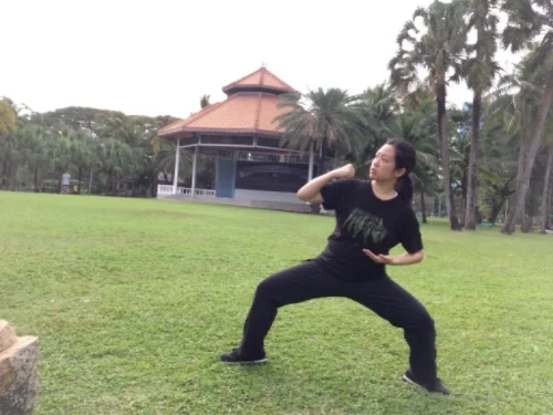 I started the year with a trip to the motherland - and dedicated several days to practicing at Lumpini Park in Bangkok. The air and heat were so thick that I was breaking a sweat even before I began. Hydration and proper breathing and breaks were necessary. But it was still great fun - practicing solo in a brand new setting. For those of you that haven't been, the Bangkok cityscape is distracting. Lots of bustle, cars, ads, vendors, flashy buildings. It was a great test of focus. I could have stopped because it's either too hot, or the food vendors too tempting, or the pull to sightsee and shop all day. I told myself each morning I would complete my warm-up sequence and at least 2 form repetitions each day, then touch-up on certain moves.